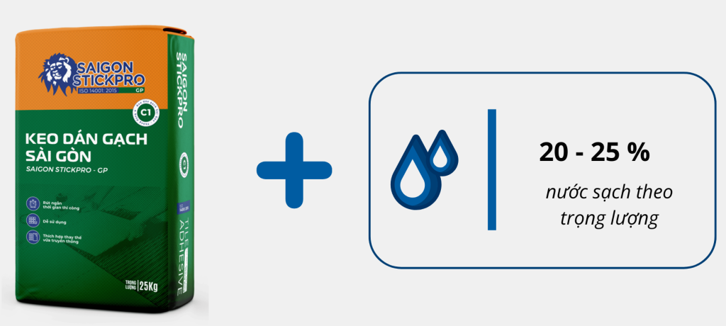 - Pha trộn keo dán gạch với nước sạch theo đúng tỷ lệ quy định.