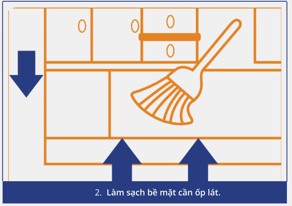 - Vệ sinh bề mặt sạch sẽ, đảm bảo bề mặt khô ráo và chắc chắn.
