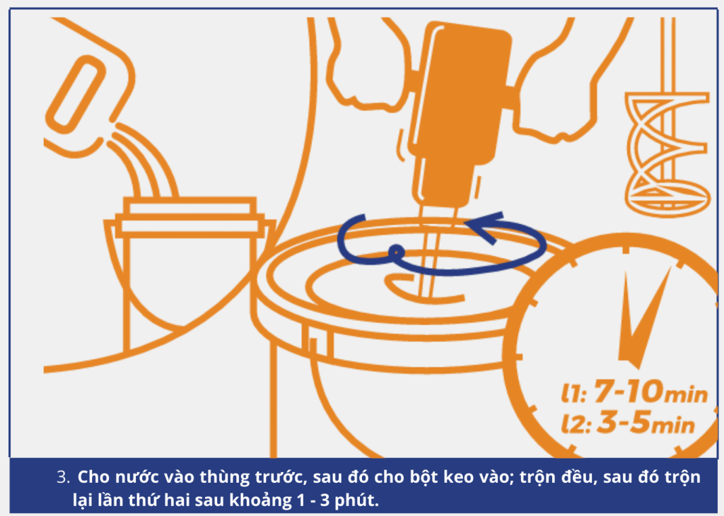 - Các bước trộn: Trộn đều trong 2 - 4 phút, để hỗn hợp nghỉ khoảng 1 - 3 phút để các thành phần hóa học phản ứng hoàn toàn, sau đó trộn lại lần nữa trong 2 - 4 phút.