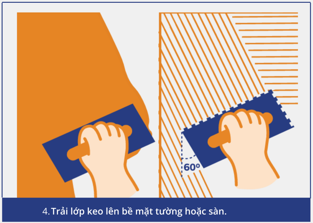 - Sử dụng bay răng cưa để trải keo lên bề mặt nền.