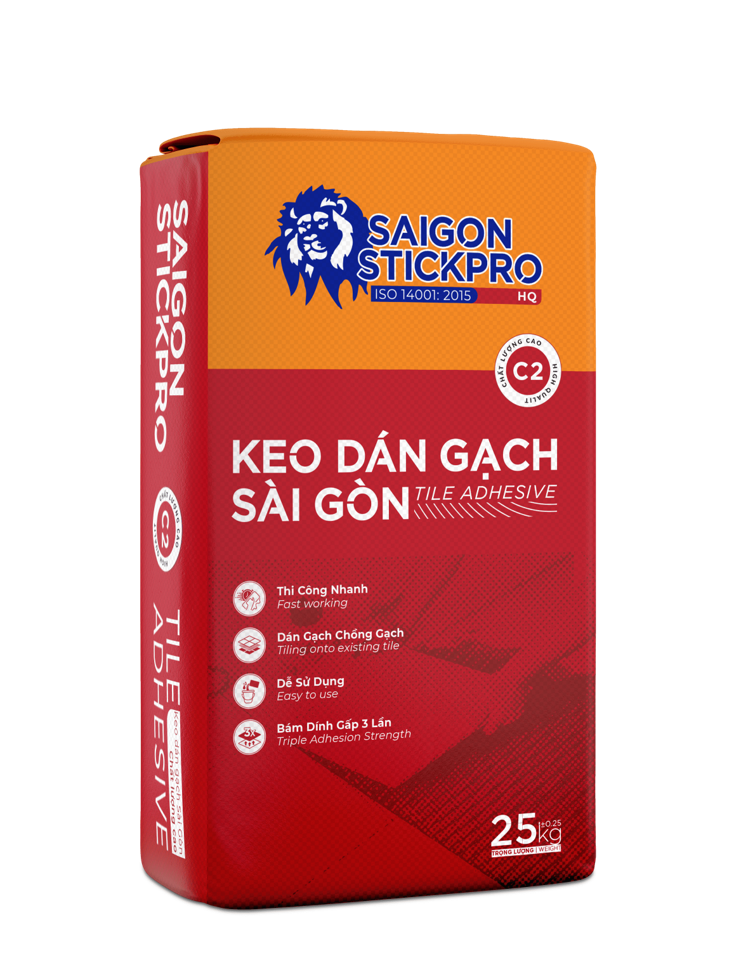 Saigon Stickpro C2 is a high-performance, cement-based tile adhesive (High Quality - HQ), classified as C2 according to the standard TCVN 7899-1:2008. The product is designed to solve the most demanding tiling challenges, from large-format tiles to high-load and high-humidity areas.